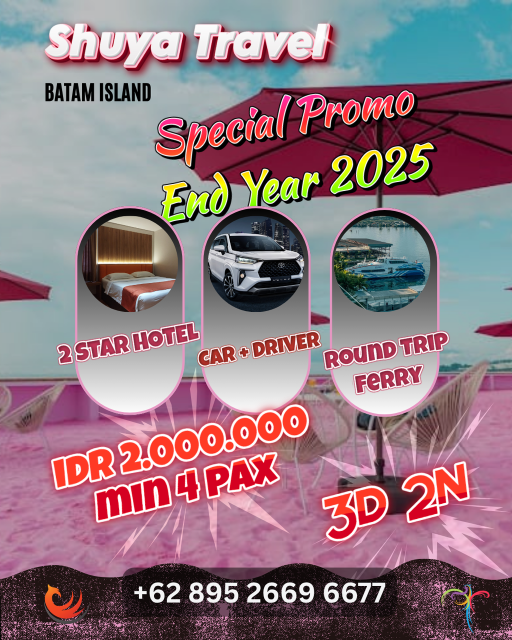 Enjoy a special IDR 100K / Pax discount when you travel from Stulang Laut (JB) with Shuya Travel.